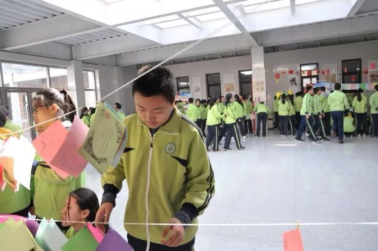 三、 竞猜灯谜闹元宵,师生共庆佳节到 正月十五佳节到来之日,全校师生在天地广场和初中部大厅共庆元宵佳节。活动在“王老师讲故事”中拉开帷幕,段书记和王金增老师分别向孩子们普及了元宵节名称含义、历史渊源、以及谜语的组成、猜谜的技巧方法等知识。接着开始猜谜行动。孩子们热情高涨、积极竞猜,可谓收获满满、意犹未尽!直到活动结束仍舍不得离开。