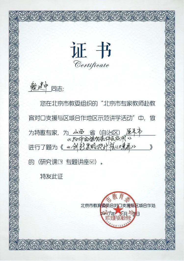 为了能让更多的老师和学生获益,鲍老师多次参与国家中小学教师送教下乡项目,先后到河北,山西,西藏等贫困地区进行援教。