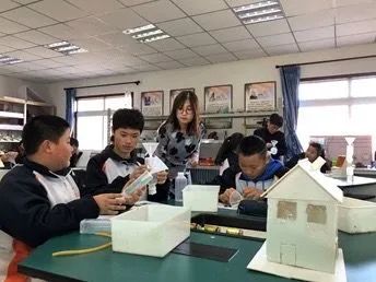 在《垃圾分类》课上学生亲自动手用废旧物品设计各种垃圾分类器具,助力北京市垃圾分类工程,从小养成垃圾分类保护环境的意识