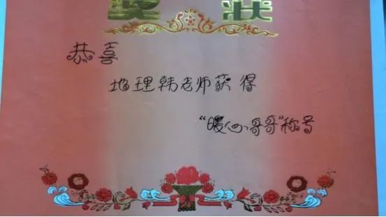 暖心哥哥是2019届孩子们颁给韩老师的奖状,"这是对我最大的褒奖,能被孩子们喜欢,这是老师的职业幸福感。"在学生眼里,韩老师亲切和善,话语不多,高冷而时有幽默。学生的认可来自他对孩子们的陪伴与关心。每一朵花都有盛开于春天的梦想;每一粒种子都有长成参天大树的希冀;作为老师,就是用心陪伴,静待花开,与学生共享甘苦,收获成长的喜悦。